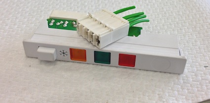 Pannello di controllo e comando per refrigeratori. Il prodotto è connesso al cablaggio tramite un connettore CS Series RAST 5.